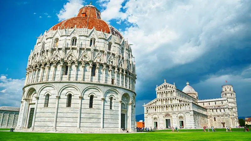 Conosciuta come Piazza dei Miracoli, rappresenta la perfezione architettonica dello stile romanico Pisano, un abbinamento di motivi classici, paleocristiani, lombardi e orientali. I monumenti che qui si affacciano sono il Duomo, il Battistero, il Camposanto e, naturalmente, l’universalmente nota Torre Pendente.