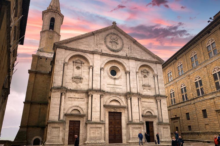 Pio II volle creare un centro urbano fortemente degno e in ideale antitesi con l’altra città che l’aveva, con la sua famiglia, ingiustamente emarginato: Siena.